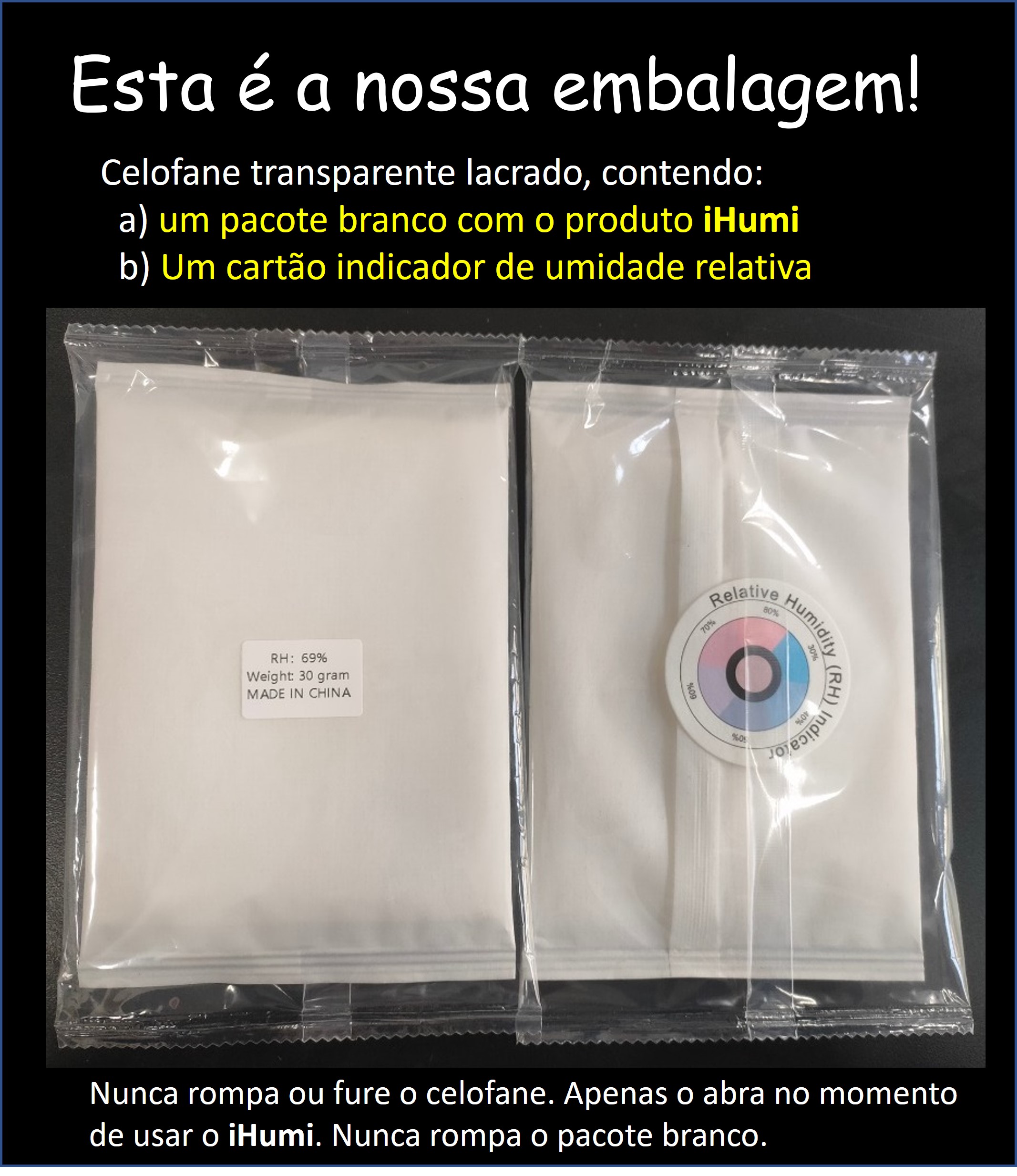 Nunca rompa ou perfure o celofane transparente antes do momento da utilização do iHumi, sob pena de perdê-lo.