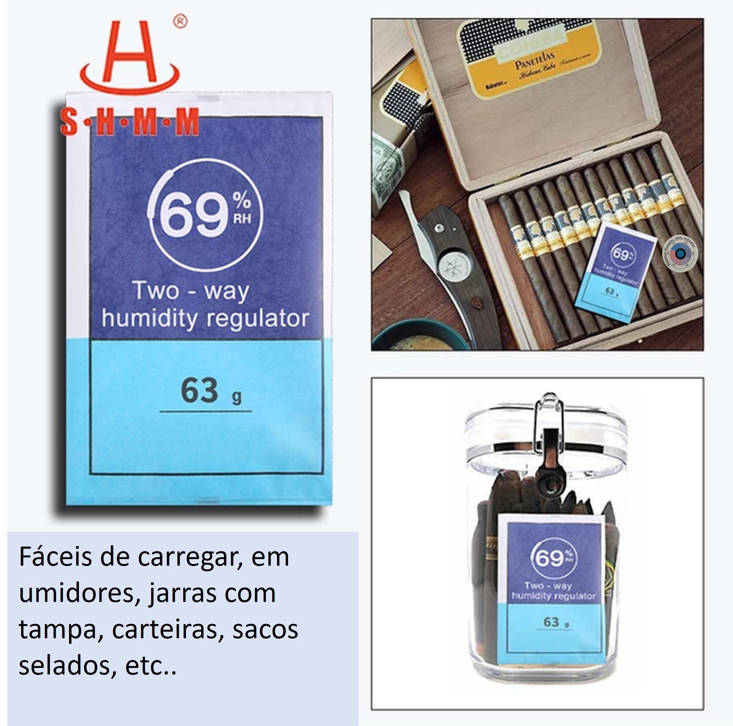 iHumi 69% 30g => umidores com volume para até 12 charutos .