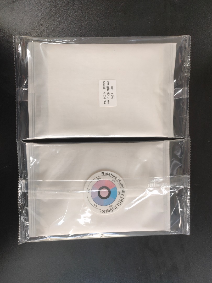 Pacote estabilizador de Umidade em ambiente confinado (veja textos mais abaixo), em 69% +- 5%, com 60 gramas de material ativo